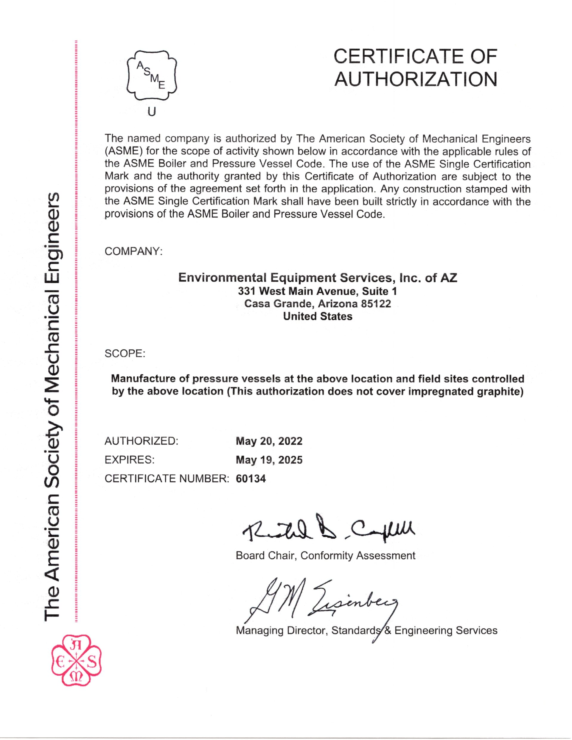 Chemical processing requires high-quality equipment that stands up to even the most demanding applications. At EEServ, we design and fabricate ASME pressure vessels, heat exchangers and non-code tanks in Casa Grande, AZ. Our heat exchangers can be sized according to your process needs along with materials of construction. We can construct ASME Heat Exchangers to 3000 PSIG.